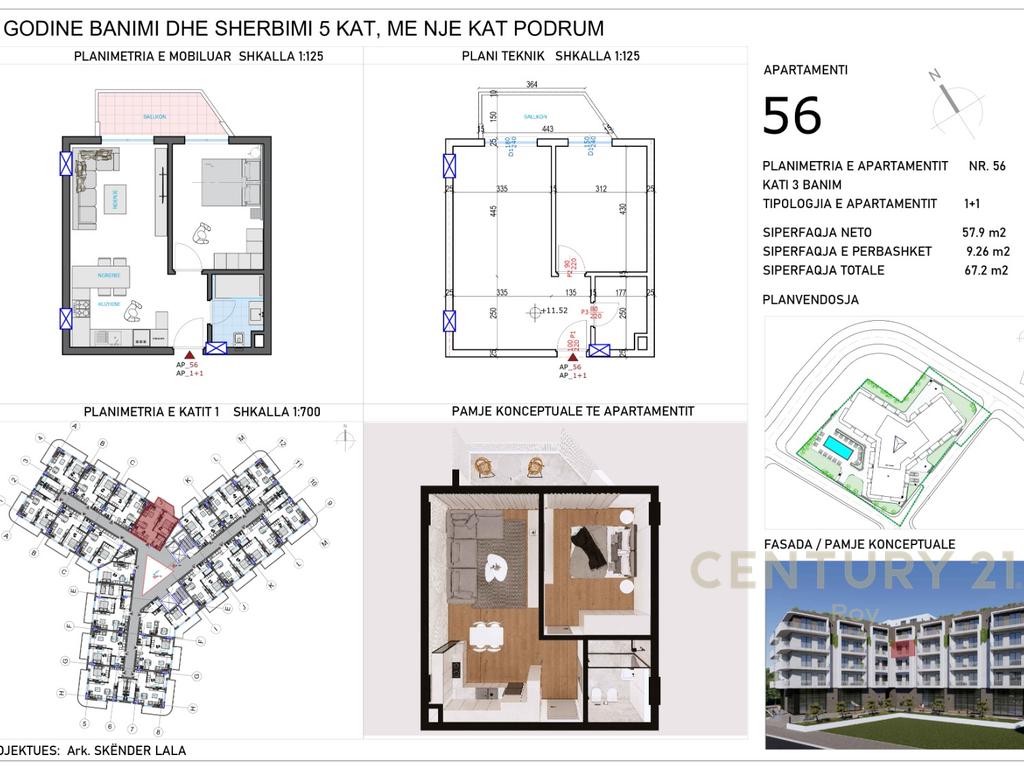 The apartment with an internal area of 57.9 m2 and a total area of 67.2 m2 is organized into a living room + kitchen, 1 bedroom, 1 bathroom. It is located on the 3rd floor of a new building under construction, of very high quality with European standards. The location is near the Qerreti beach and accessible from the main road. Great importance has been given to the infrastructure and services for the residents of the complex, leaving relaxation spaces between the pools, areas for walking and entertainment, bike rides considering all ages. Parking is located underground, leaving parking space for each housing unit. The parking spot has added value. The building is in the construction phase. For more information or a visit to the site, contact us!