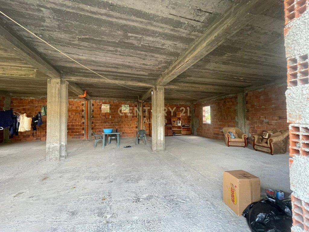We offer for sale a two-story house just 5 minutes away from the center. It is organized on a plot with a considerable area of 343m2, providing ample space for car parking and a pleasant yard with various flowers. The first floor is arranged as an open unfinished area where the client can make partitions as desired, while the second floor has a 2+1+2 layout, consisting of a living room combined with the kitchen, two bedrooms, and two bathrooms. The building is also designed for an additional floor and is located near the former brick factory, just 70 meters from the main road.
