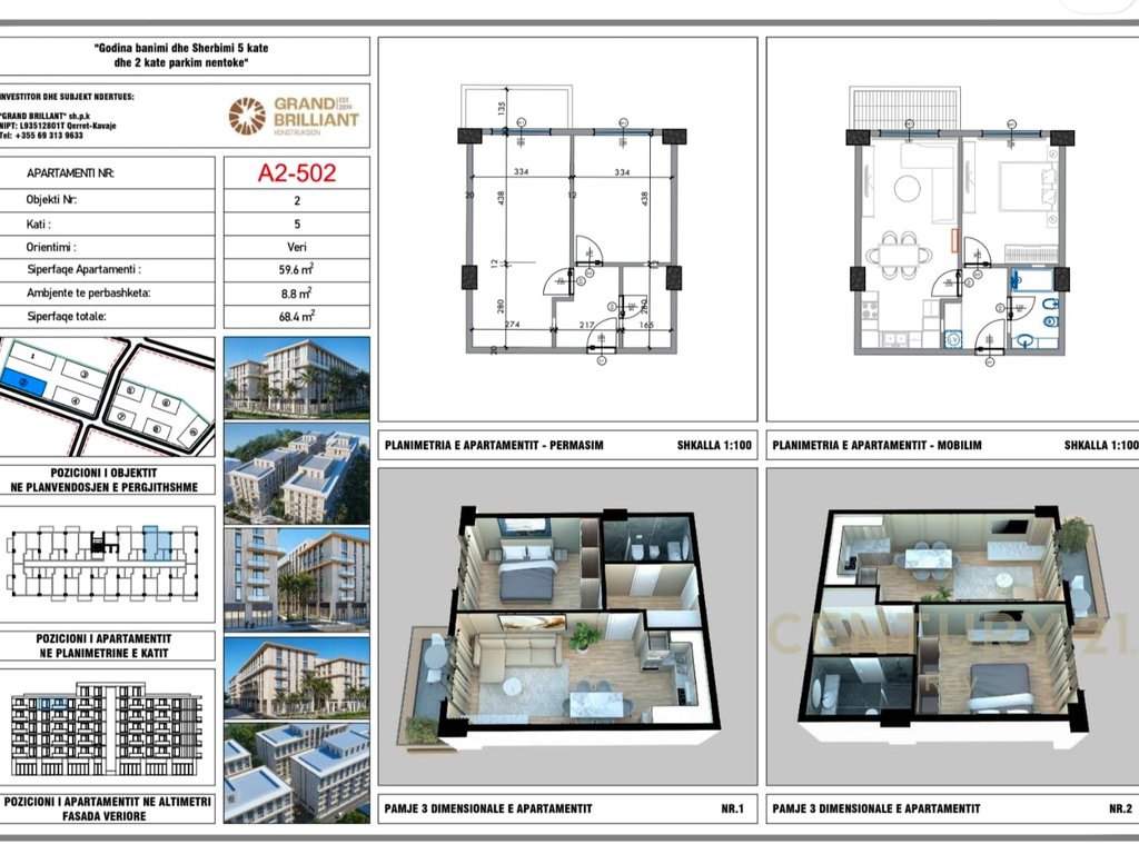 Apartment 2+1 for sale in Qerret, in Palm Paradise Residence! The apartment has an internal area of 73.8 m2 and a total area of 84.6 m2. It is organized into a living room + kitchen, 2 bedrooms, 1 bathroom, and 1 balcony. It is located on the 5th floor of Building A2 in Palm Paradise Residence in Qerret.