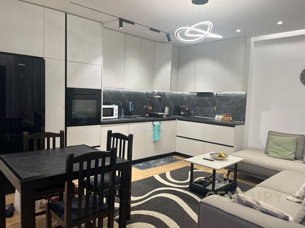 Apartamenti është i organizuar në mënyrë perfekte me një sallon të hapur me kuzhinë moderne, dy dhoma gjumi dhe një tualet funksional.
