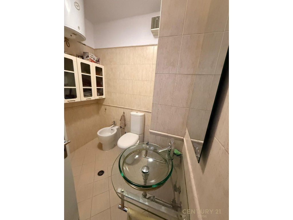 This 2+1 apartment is located on the 9th floor in the Qemal Stafa Stadium area in Tirana and is offered for rent at €1500 per month.