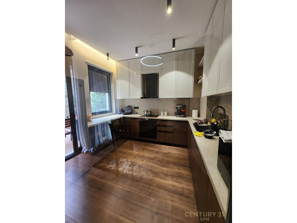 Triplex for sale in Dry Lake, Tirana, with 3 bedrooms, 2 living rooms, 4 bathrooms, 3 parking spaces, and a yard