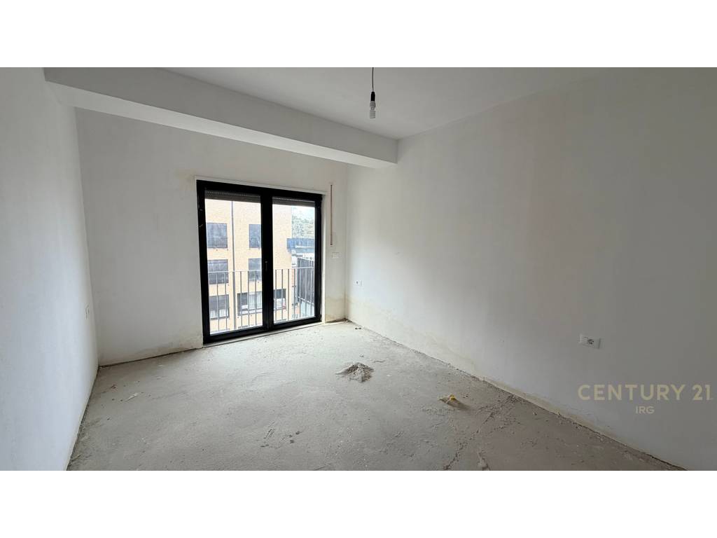 • Apartment 2+1+2 bathrooms for sale at Rezidenca Kodra e Diellit 2, on the 5th floor of a new building, equipped with an elevator. The apartment has a gross area of 141.4m2 and a net area of 118.4m2, organized into a living room, separate kitchen area, two bedrooms, two bathrooms, and a balcony with an open view.