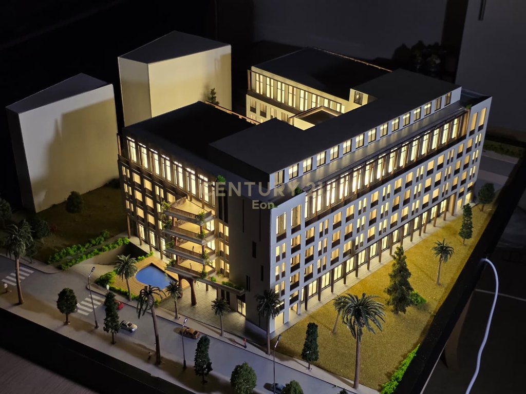 Studio for sale in Mali i Robit, part of a new modern residence under construction with a pool and parking that offers comfort and facilities for a quality living.