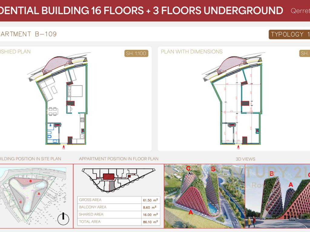Located in an open and developed environment, the residence consists of several floors above ground and underground parking levels, ensuring functionality, easy access, and maximum comfort for residents.
