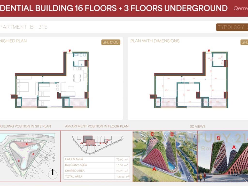 Located in an open and developed environment, the residence consists of several above-ground floors and underground parking levels, ensuring functionality, easy access, and maximum comfort for residents.