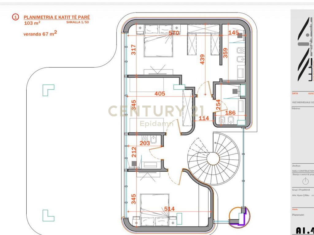 The first floor includes 3 bedrooms and 3 toilets, each room having access to a veranda with an area of 62 m².