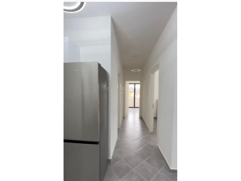 The apartment is located on the second floor of a 10-story building in the Hipoteka area of Tirana and is available for rent.