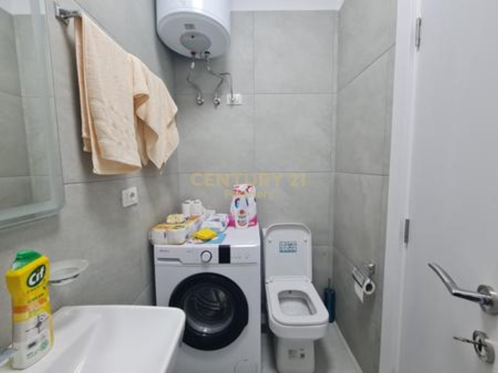 1+1 apartment for rent, located on the 7th floor (top floor) of a building in the Laprakë area. The apartment has a gross area of 50 m² / 43 m² net, consists of 1 bedroom and 1 bathroom, and is suitable for individuals or couples.