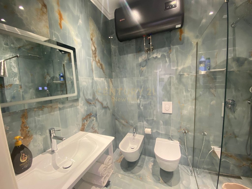 Apartamenti eshte i organizuar ne sallen e ndenjes ,kuzhina ,nje dhome gjumi dhe tualeti.Eshte i investuar ne detaje me nje arredim modern dhe komod.Pervec komoditetit ky apartament te ofron gjithashtu dhe siguri,ku dyert mbyllen me password sigurie.