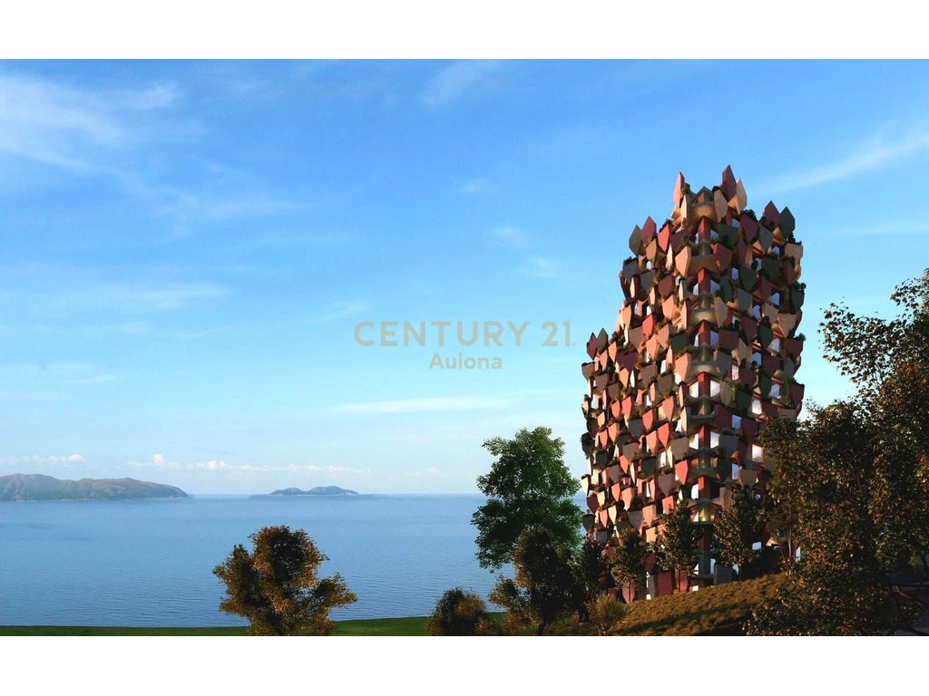 "The Leaves" është një projekt i ri në zonën kodrinore të Ujit të Ftohtë, Vlorë, në rrugën "Dhimiter Konomi", i pozicionuar midis detit dhe malit. Projekti dallon për fasadën moderne me elementë të natyrës dhe ngjyra të ndryshme, që shërbejnë edhe si vazo për pemë në ballkone dhe ofrojnë mbrojtje nga dielli. Godina përbëhet nga dy struktura prej 14 dhe 16 katësh, me 3 kate nën tokë, ku shumica e apartamenteve ofrojnë pamje të plotë nga deti. Apartamenti 1+1, sipas planimetrisë së bashkangjitur, ofron pamje të bukur deti. Pagesa ofrohet në 4 këste mundesi perzgjedhje kati i 4,6,8,10,12. Për më shumë informacion, ju lutem kontaktoni.