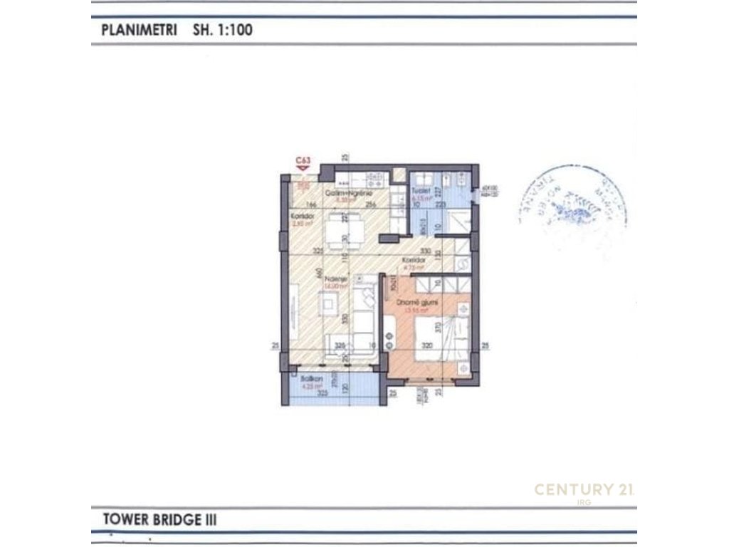 Apartament 1+1 me sipërfaqe 64 m² bruto dhe 57 m² neto, në një nga komplekset më cilësore të zonës së Oxhakut,Tower Bridge 3.
