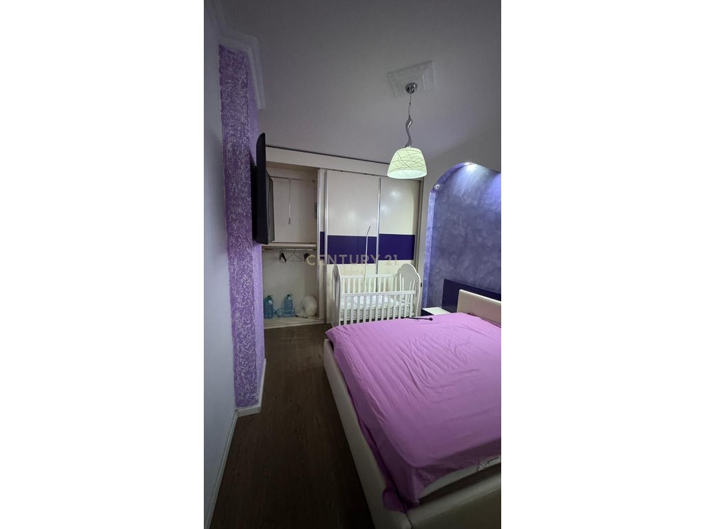 Me një sipërfaqe prej 86 m2 neto, apartamenti organizohet në 2 dhoma gjumi, 2 tualete, sallon ndjenje së bashku me kuzhinën dhe një ballkon. I mobiluar totalisht me cdo aksesor të nevojshëm apartamenti është i përshtatshëm për familje që kërkojnë qetësi, komoditet dhe akses të lehtë në shërbime. Cmimi 50.000 ALL (Pesëqindmijë Lekë të vjetra). Garazhi me qepen në katin -1 është i përfshirë në cmim.