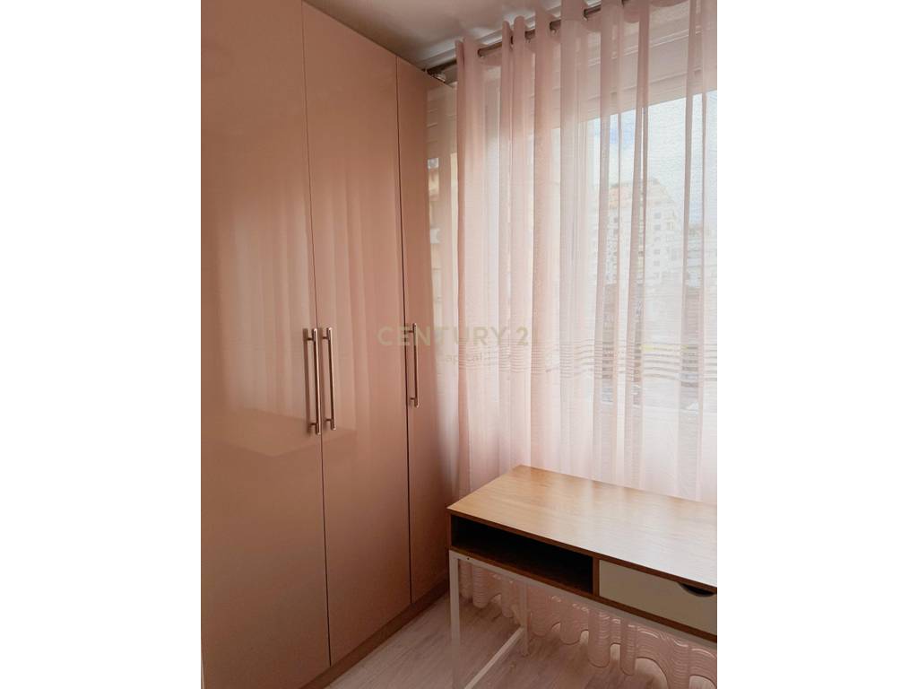 Me një sipërfaqe neto prej 76 m² apartamenti organizohet në dy dhoma gjumi, një kuzhinë të veçuar dhe një tualet të bollshëm me ajrim natyral. Me orientim nga Jugu, ky apartament ofron një ambient të ngrohtë dhe plot dritë. Ofrohet totalisht i mobiluar, me të gjithë mobiljet dhe elektroshtëpiaket e nevojshme, ajër të kondicionuar dhe ujë te filtruar. I përshtatshëm për familje që kërkojnë komoditet dhe çdo facilitet të nevojshëm fare pranë.