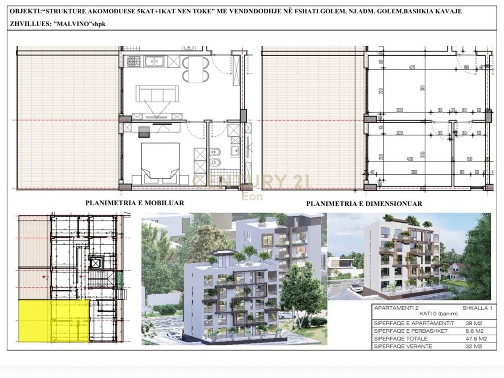 Disponon siperfaqe totale 47.6 m2 dhe verande 32 m2 ,ndodhet ne katin 0 te nje pallati ne ndertim, 6 katesh .