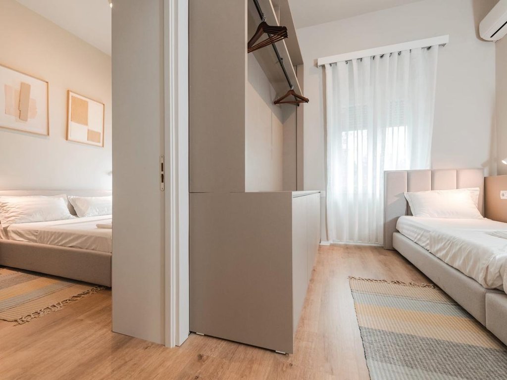 Dy dhoma gjumi: njëra me krevat martesor, tjetra me dy krevate teke, ideale për familje ose bashkëjetesë
