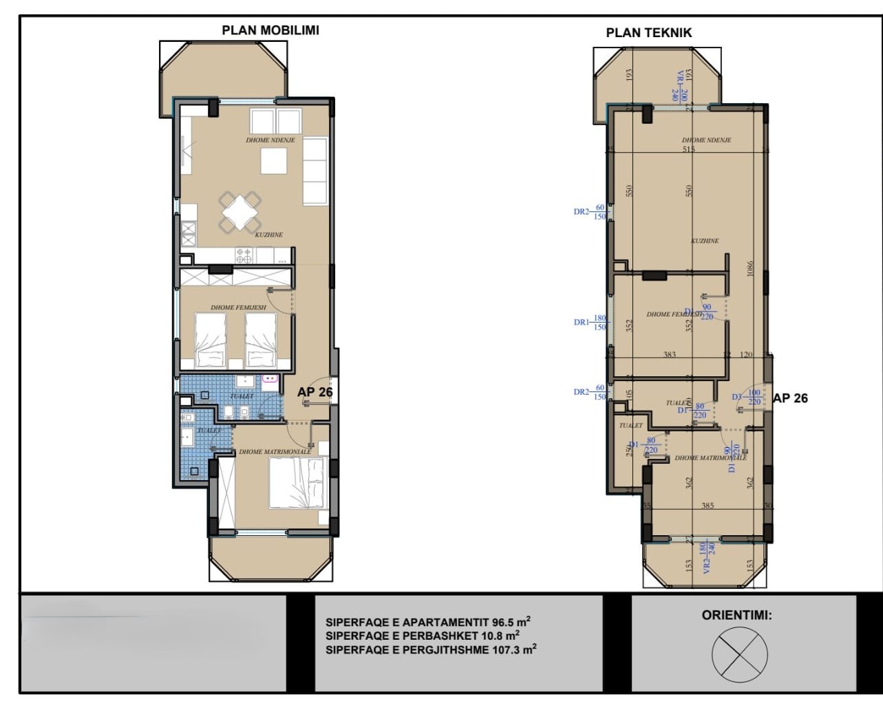 Apartamenti ndodhet në katin e 4-të banim të një pallati të ri, në fazën përfundimtare të ndërtimit, i cili përbëhet nga 4 kate banimi dhe 2 kate parkim + hotel. Falë orientimit lindje–perëndim, apartamenti përfiton ndriçim natyral gjatë gjithë ditës.