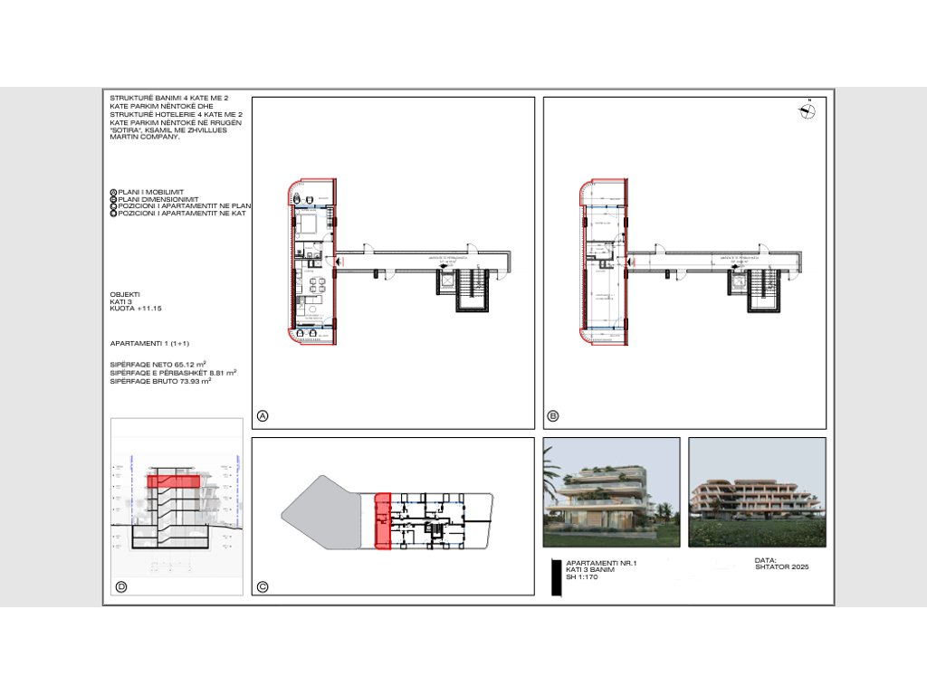 Apartamenti ndodhet ne katin e 3-te, pjese e nje objekti ne ndertim.