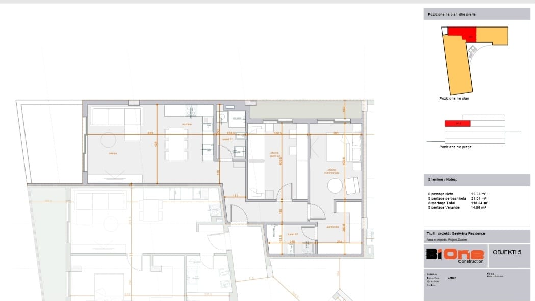 • Përbëhet nga 1 sallon ndenjeje, 2 dhoma gjumi dhe 2 banjo