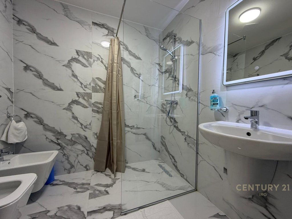 Siperfaqe 117.5 m2, apartamenti organizohet ne 1 koridor shperndares, 1 sallon se bashku me kuzhinen, 2 dhoma gjumi, 2 tualete dhe 2 ballkon. Pozicionohet ne katin e 3 te banimit te nje pallati te ri me ashensor. Apartamenti eshte totalisht i investuar. Zona ne te cilen ndodhet ofron te gjitha facilitetet per nje jetese sa me komode!