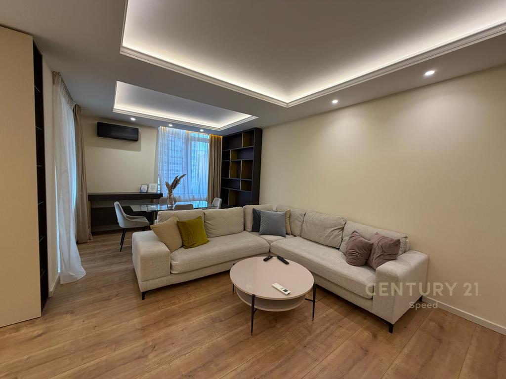 Apartament i mirëorganizuar dhe totalisht i mobiluar për qira në zemër të Tiranës, përballë Toptani Shopping Center.