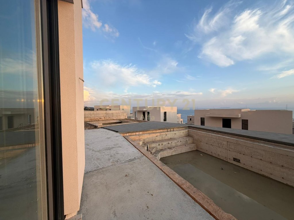 - Një verandë e bollshme ne katin perdhe me siperfaqe 65 m2 e mbuluar me hijezues me pamje të mrekullueshme nga deti dhe pishina, e përshtatshme për relaksim dhe për të shijuar mbrëmjet.