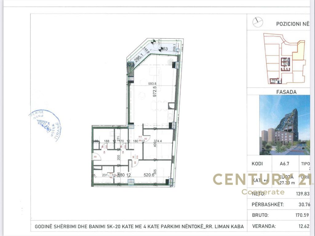Objekti karakterizohet nga standarde të larta ndërtimi dhe infrastrukturë moderne, duke përfshirë 5 kate parkimi nëntokë, si dhe akses të menjëhershëm me shërbimet kryesore të zonës.