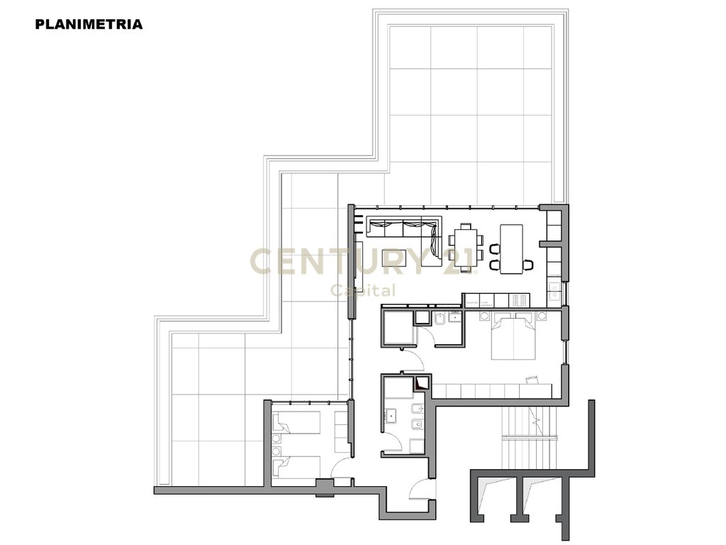 Apartamenti ndodhet në katin e 8-të të një ndërtese 8-katëshe, aktualisht në fazë tulle. Organizohet në: 1 sallon së bashku me kuzhinën, 2 dhoma gjumi, 2 tualete dhe 1 verandë e madhe. Pallati pritet të jetë gati për banim, në Korrik 2027.