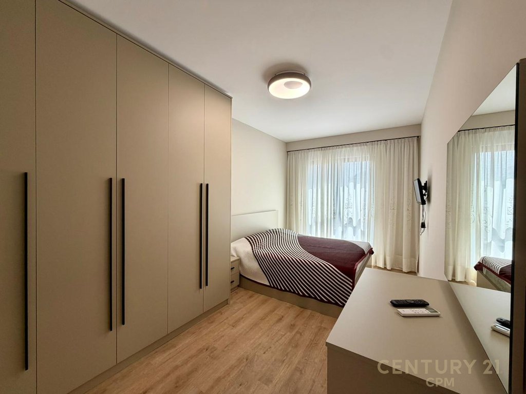 Apartamenti ndodhet ne nje ndertim te ri ne zonen e Pazarit te Ri.
