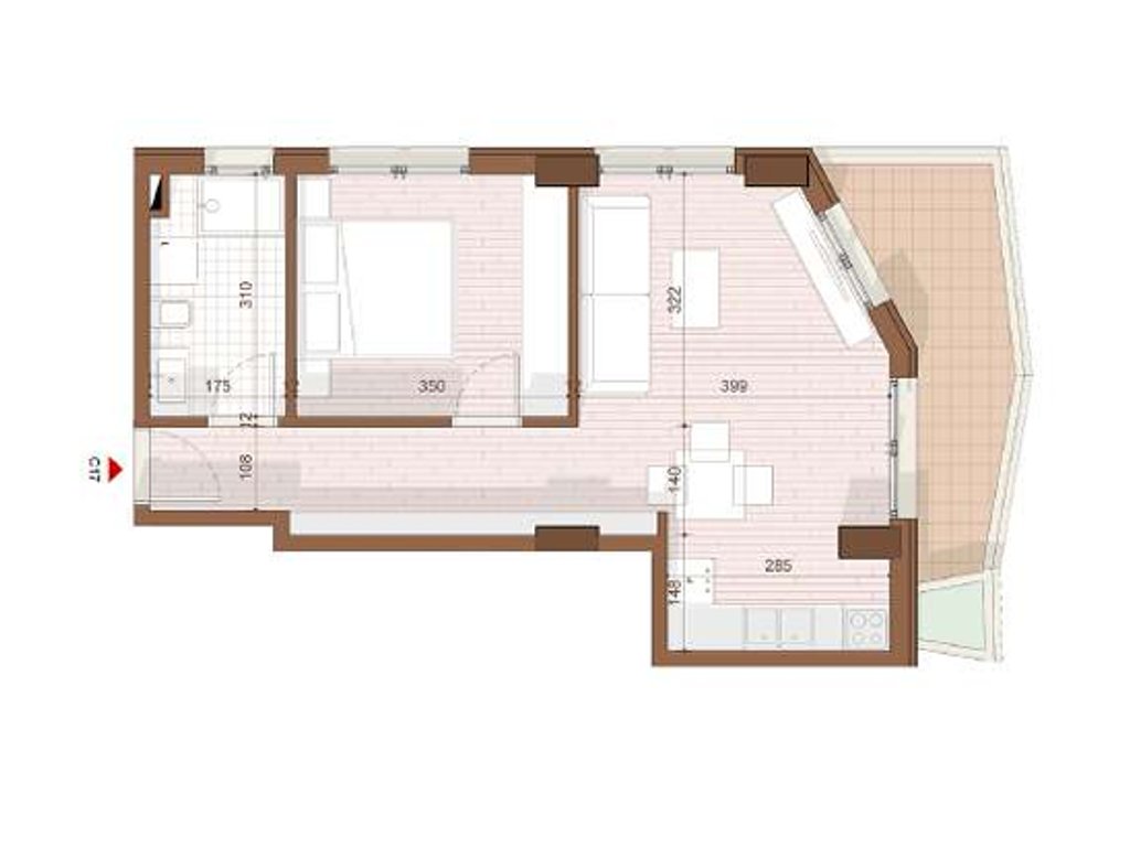 Apartamenti ndodhet në katin e parë banim, me sipërfaqe neto 51.4 m2, sipërfaqe totale apartamenti 60.7 m2 dhe sipërfaqe verande 9.2 m2.